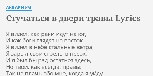 Stuchatsya V Dveri Travy Lyrics By Akvarium Ya Videl Kak Reki