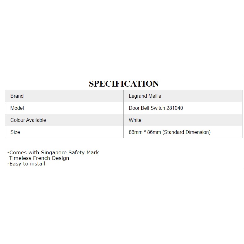 Legrand Mallia Door Bell Switch White With Bell Logo Shopee Singapore