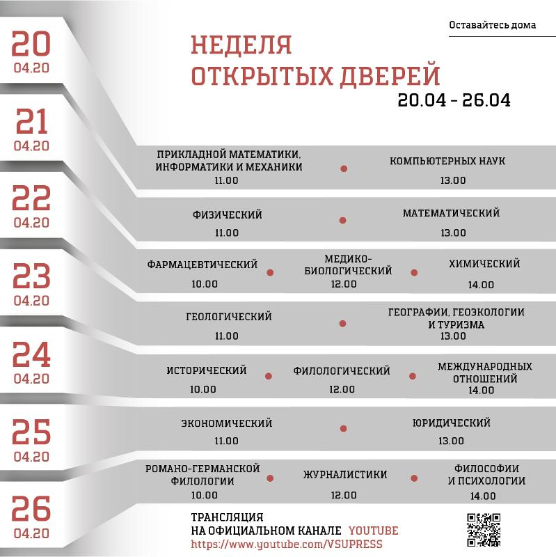 Grafik Provedeniya Dnej Otkrytyh Dverej Fakultetov V 2020 Godu Vgu Imeni P M Masherova Vgu Imeni P M Masherova