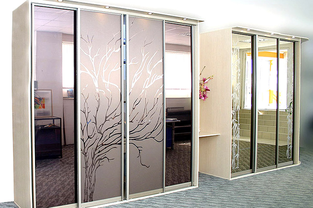Uglovoj Shkaf S Zerkalnymi Dveryami I Peskostrujnym Risunkom